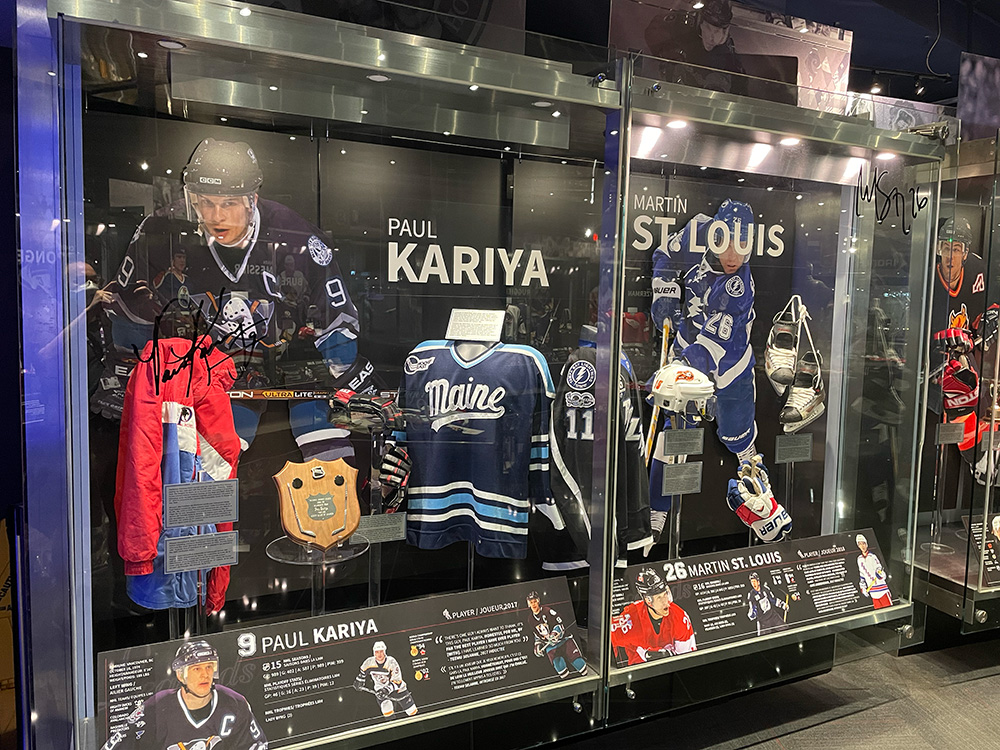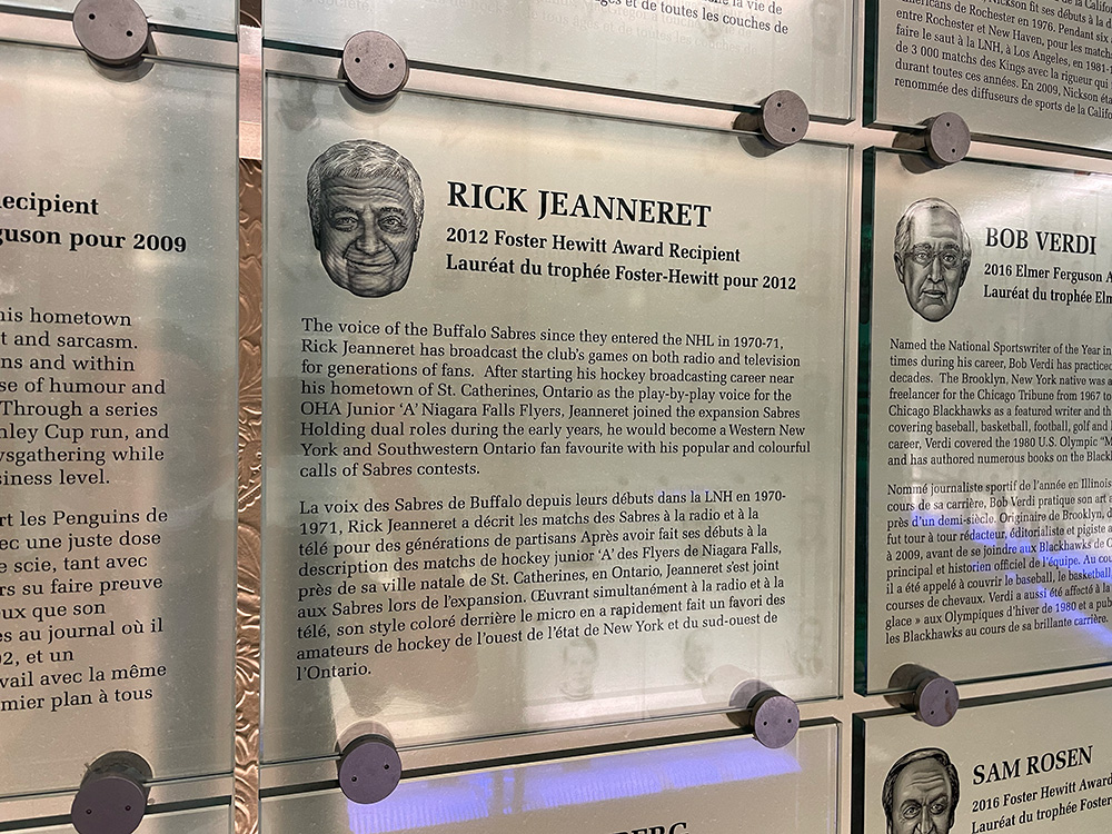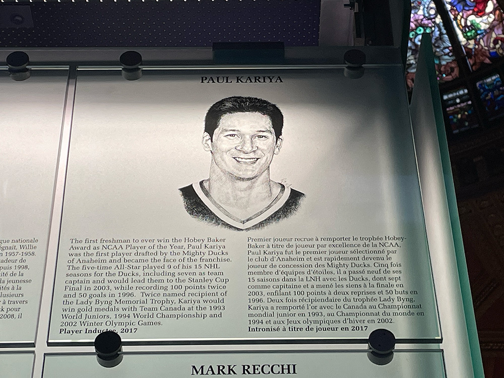 And to round out the day (courtesy of the good folks at Destination Toronto), I even got to visit the Hockey Hall of Fame for the first time in about twenty-five years. I hunted down as many Sabres names as I could via plaques (Ted Darling, Gilbert Perrault, Dominik Hasek) and trophies (Michael Peca on the Selke, Buffalo still surprisingly on the President’s Trophy), enjoying the museum for all its paraphernalia (curios, Original Six seats), displays (marginalized communities, teams, international jerseys), and interactive events. Had to find my guy Paul Kariya too.