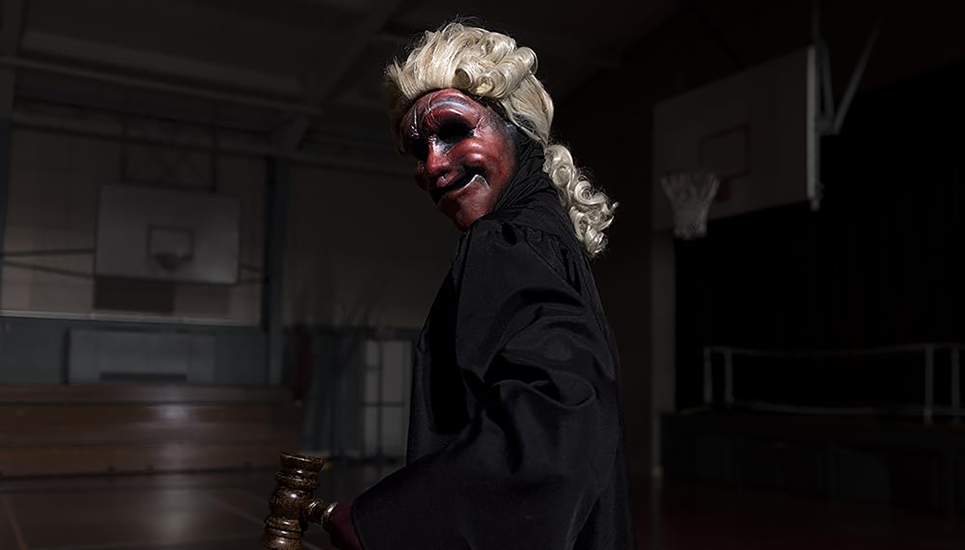 This political masquerade sits at the back of director Erik Bloomquist and co-writer Carson Bloomquist’s latest collaboration FOUNDERS DAY. The titular festival is upon this sleepy neighborhood with the ballot boxes waiting their turn a couple days later. But it is just a backdrop. The brothers aren’t necessarily supplying us with a political horror thriller as much as dressing their comic slasher up in government clothes. Their murderer wears a powdered wig and wields a retractable ice pick gavel as though he’s doling out justice, but is he? Is killing kids truly justice? Or is it merely a distraction for petty jealousies?
