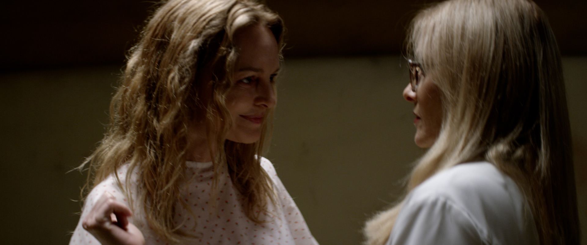After seeing the aftermath of a brutal death that’s left its victim unrecognizable in the morgue, Dr. Dani Upton (Barbara Crampton) goes to the padded cell that now houses its murderer: her old friend and fellow psychologist Dr. Beth Derby (Heather Graham). She wants answers, but cannot parse the ravings of the schizophrenic personality in front of her—a diagnosis the latter agrees fits with her description of her current reality. Their shared history allows Dani to at least give Beth the benefit of the doubt insofar as explaining what happened. Maybe once the story is out, she can help provide some semblance of peace since there’s little chance Beth will ever leave that hospital.