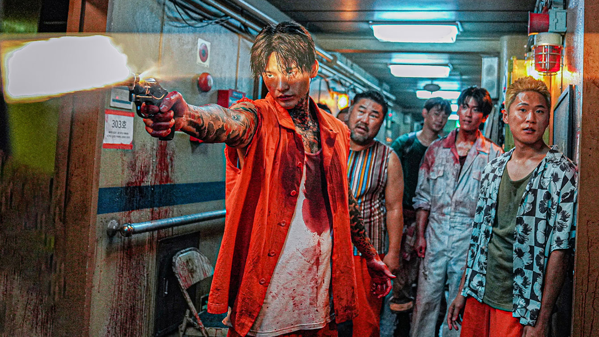 So, throw in survival feature too because Hongsun Kim isn’t afraid of any genre. There’s even a bit of romance courtesy of prisoners Choi Myung Joo (Jang Young-Nam) and Go Kun-bae (Ko Chang-seok). And if twenty some inmates, twenty some cops, a cargo ship’s crew, and the military grade operation under Oh Dae Woong’s control sounds like too many characters to keep track of—you’re correct. It’s okay, though, since you can bet most (if not all) will wind up dead. I was confused at one point that there could still be another hour left despite how many people were already reduced to pulverized flesh because I forgot just how many other poor souls were waiting in the wings. Don’t worry, though. They’ll all get to choke on their own blood eventually.