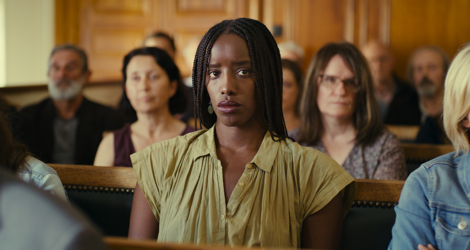 The juxtaposition is ultimately a heartbreaking one since the reality of Laurence Coly’s (Guslagie Malanda) case proves much more complex than the news reports her very conservative and white community of Saint-Omer depict. They paint her as a murderer. A monster. And she doesn’t necessarily disagree since she admits to the crime. But not to the guilt. Her defense is sorcery—that her aunts cursed her. Her attorney’s defense is insanity. The truth lies somewhere in-between once details reveal that Laurence’s circumstances are so heavily steeped in cultural bias and racist imperatives. People ask how this “intelligent” and “eloquent” Black woman could do such a thing? But how do either of those attributes matter?