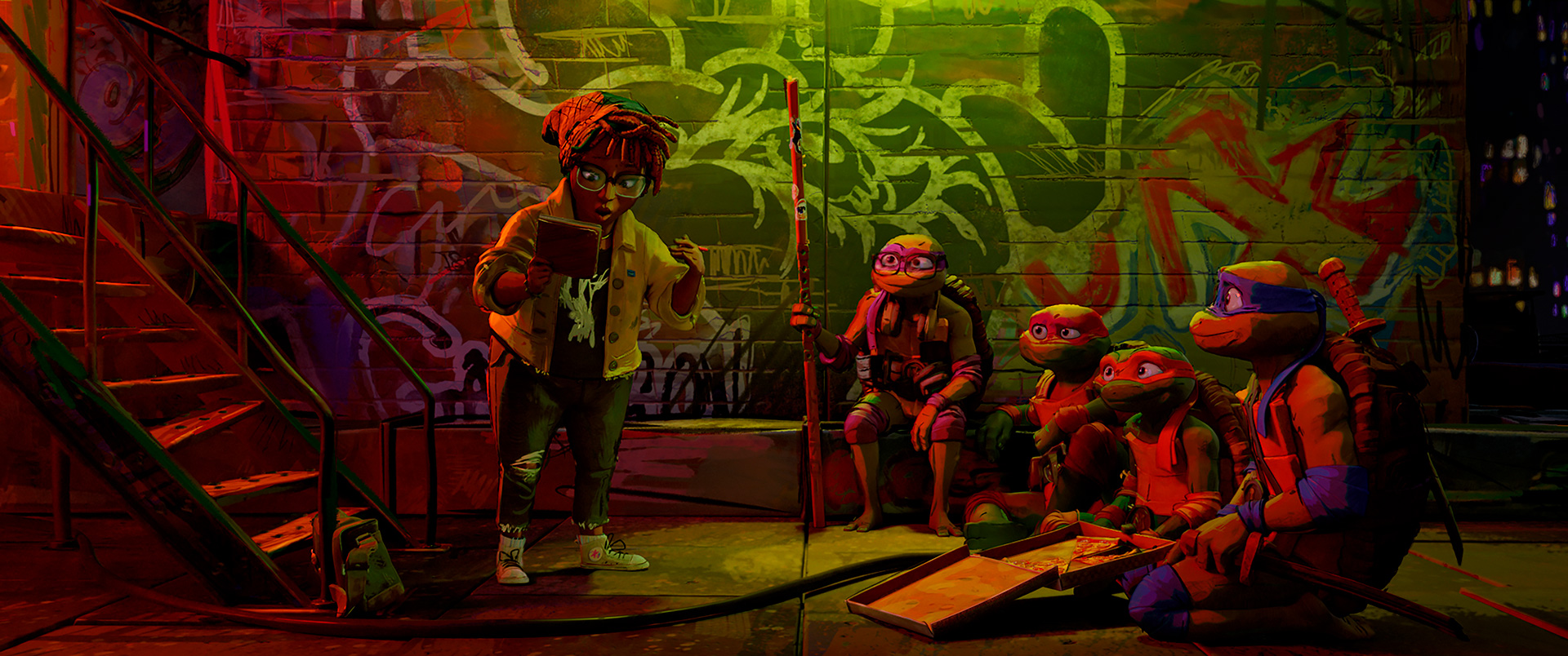 The story itself is a nice entry point into this new TMNT world (very reminiscent of the grunge animation popularized by the SPIDER-VERSE films). It introduces the idea of ooze, throws a bunch of mutants that haven’t been in previous films on-screen, and gives the leads a trial by fire confidence boost to prepare themselves for the fights ahead (watch the credits for a Shredder tease). The action is slapstick-y and kinetic with great choreography and the tone never falters in large part due to making April O’Neil (Ayo Edebiri) a teen too.