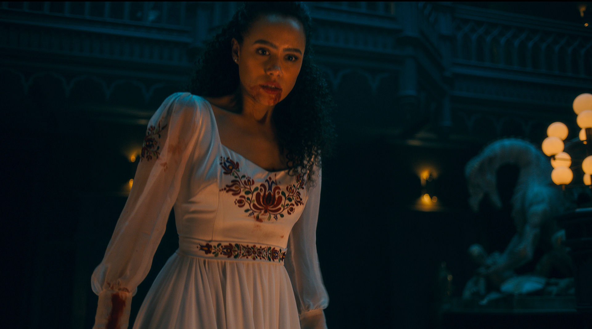 It is what it is: a tale of empowerment on gender, racial, and economic lines. Evie (Nathalie Emmanuel) is a Black artist living paycheck to paycheck with gig jobs in NYC who recently lost her mother, the last remaining member of her known family. She takes a DNA test on a whim to see what might be found about the distant British heritage her relatives only knew as rumor. Lo and behold, she’s matched with a very white cousin (Hugh Skinner’s Oliver) who explains she’s a “scandalous” piece of their wealthy legacy before inviting her to a wedding at an even richer family’s estate to the applause of his kin for discovering their bloodline wasn’t cursed with all men after all.