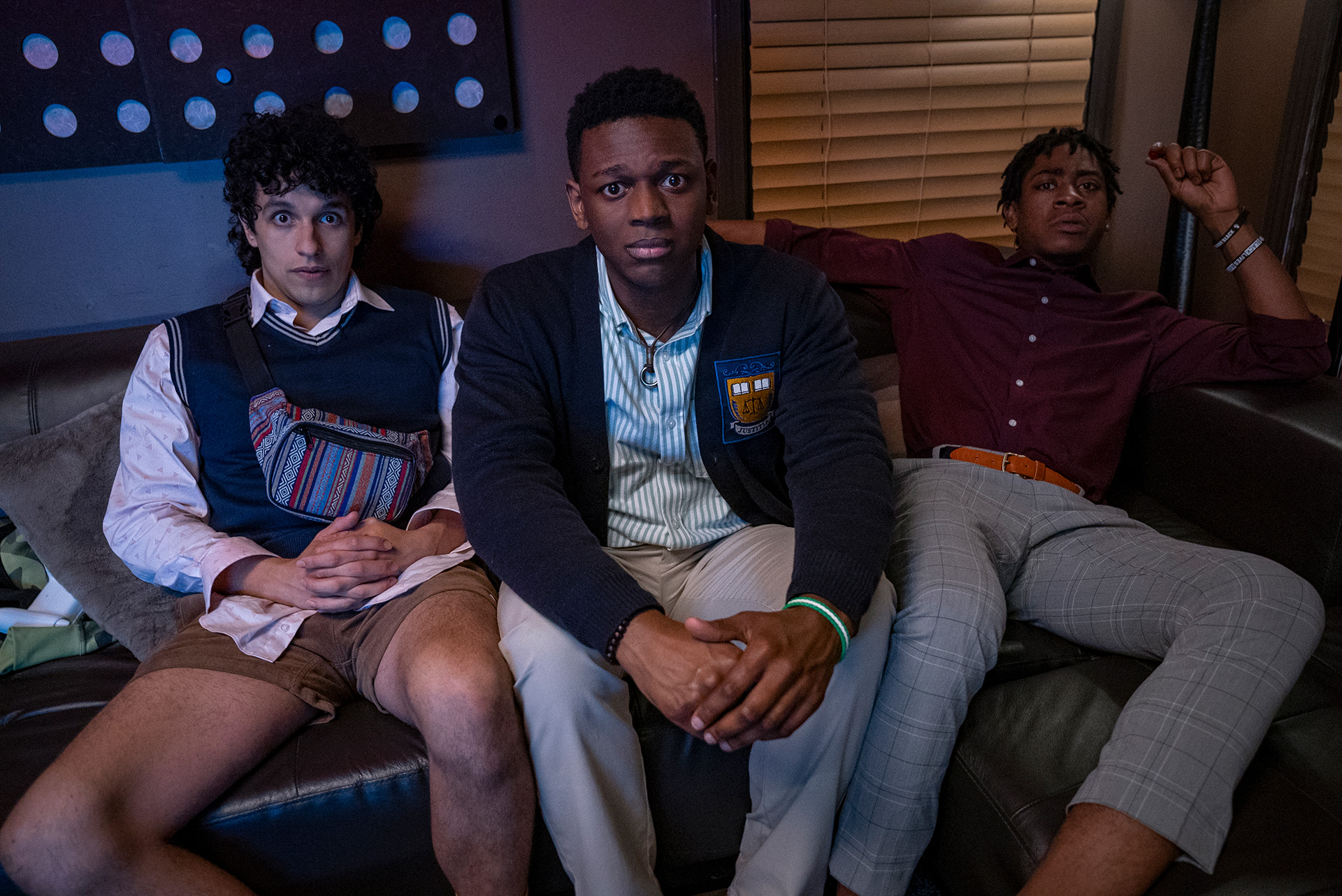 After four years living together and becoming best friends in college, this is the last chance Kunle (Donald Elise Watkins) and Sean (RJ Cyler) have to hit the frat house graduation party scene. So, to mark the occasion, Sean has procured passes to all seven of the major events in order for them to become the first two Black men to ever complete the so-called “Legendary Tour.” Unfortunately, before they can hit the pregame and get their night started, they notice the door to their house is open. Assuming their third roommate Carlos (Sebastian Chacon) subjected them to a robbery, they’re unprepared to find an addition instead: an unconscious Emma (Maddie Nichols) on the floor.