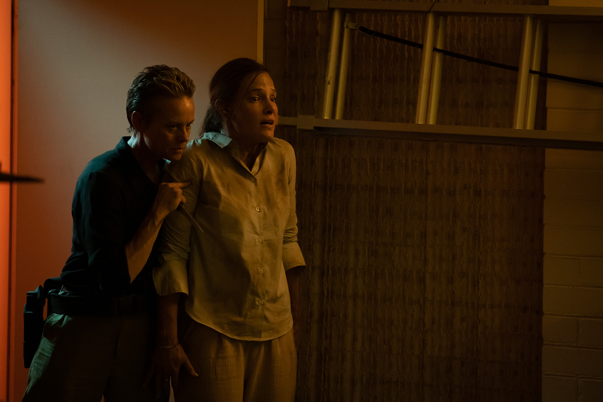 Because you can’t just create this narrative without context or political ambitions. While it might be able to exist as a twisty thriller about a grieving mother violently teaching another woman that her pain isn’t for sale in Australia, its choices hold a lot more baggage in America. Here it’s cop (Nadine Garner’s Samantha Romans) versus media (Samantha Tolj’s Jamie Connard). It doesn’t matter that the former’s “good guy with a gun” failed to stop the shooting despite being on the grounds as it started. It doesn’t matter that the latter is a sensationalist blogger looking for clicks rather than the truth. All many people will see is a woman in blue coming from a troubled past justifiably dragging an affluent “member of the lying elite” through the trenches of true suffering.