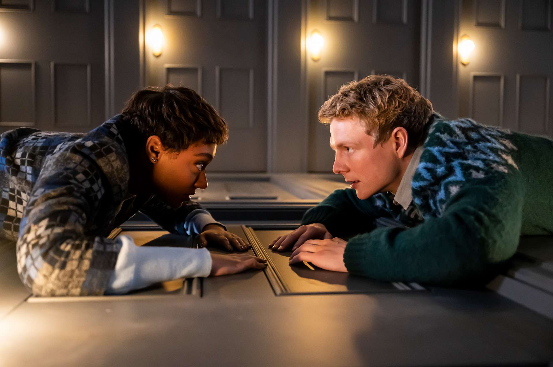 We enter the world of Tom Holt’s book series alongside Paul as he walks into the Wells building despite still knowing nothing of what is in store. Director Jeffrey Walker and screenwriter Leon Ford’s THE PORTABLE DOOR moves us from unfinished construction sites to immaculate lobbies with employees who always seem to know more than they should (Jessica De Gouw’s Rosie) and oddities that cannot be easily explained (staplers that conjure extreme emotions on both sides of the fear-to-love spectrum, rooms of dot matrix printers and pneumatic tubes, and secret closets for “Goblins Only”). It’s there that Paul and his fellow intern Sophie (Sophie Wilde) begin to understand their as yet untapped magical powers as well as whom amongst upper management has their backs.