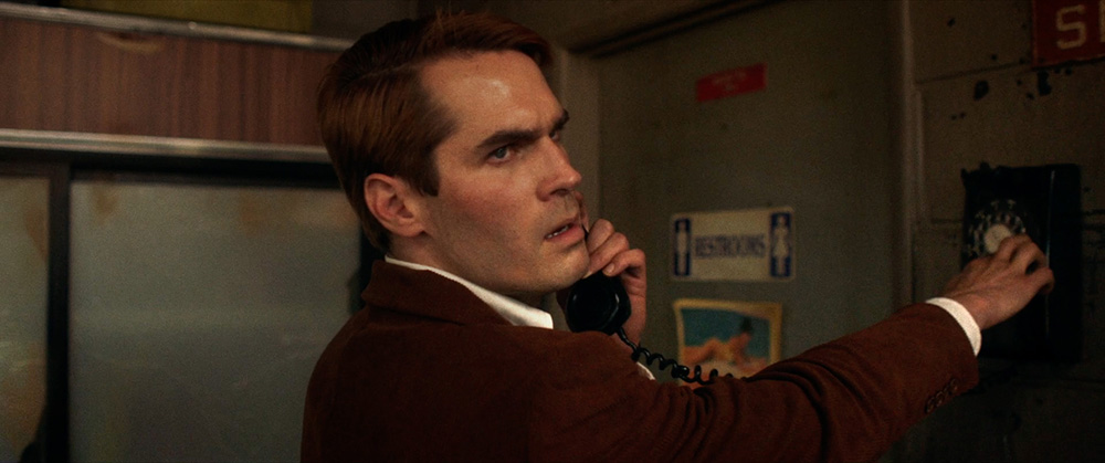 Writer/director Francis Galluppi makes sure two people know so the audience doesn’t have to hold that burden alone during the course of his debut feature THE LAST STOP IN YUMA COUNTY. That’s the benefit (or curse) of being the early birds. Honestly, if it wasn’t for the unnamed Knife Salesman’s (Jim Cummings) decision to scroll through the radio before Charlotte opened the diner’s door, things might have turned out different. But he did. He heard how the getaway car of that morning’s bank robbery was a green Pinto. And he saw Beau and Travis pull up in exactly that color and model.